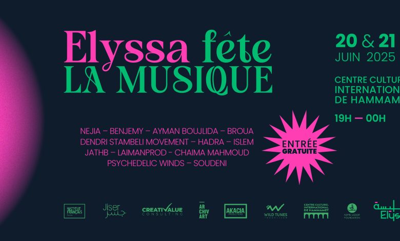 L’Institut français de Tunisie a le plaisir d’annoncer l’organisation de l’événement « Elyssa fête la musique »,qui se tiendra les vendredi 20 et samedi 21 juin 2025, de 19h à minuit, au Centre Culturel International de Hammamet (Dar Sebastian). Cette manifestation s’inscrit dans le cadre du projet Elyssa, un dispositif de soutien à la création artistique contemporaine en Tunisie.