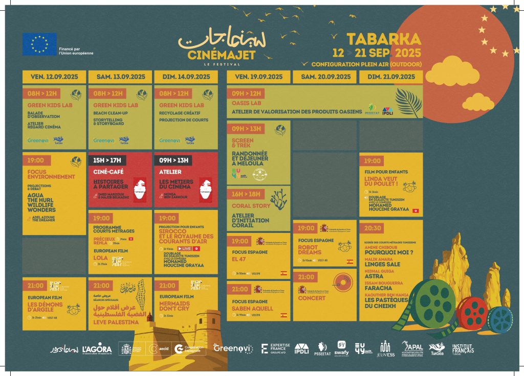 Rendez-vous du 12 au 21 septembre à Tabarka et du 10 au 19 octobre à Nefta, pour vivre l’expérience unique du cinéma itinérant.