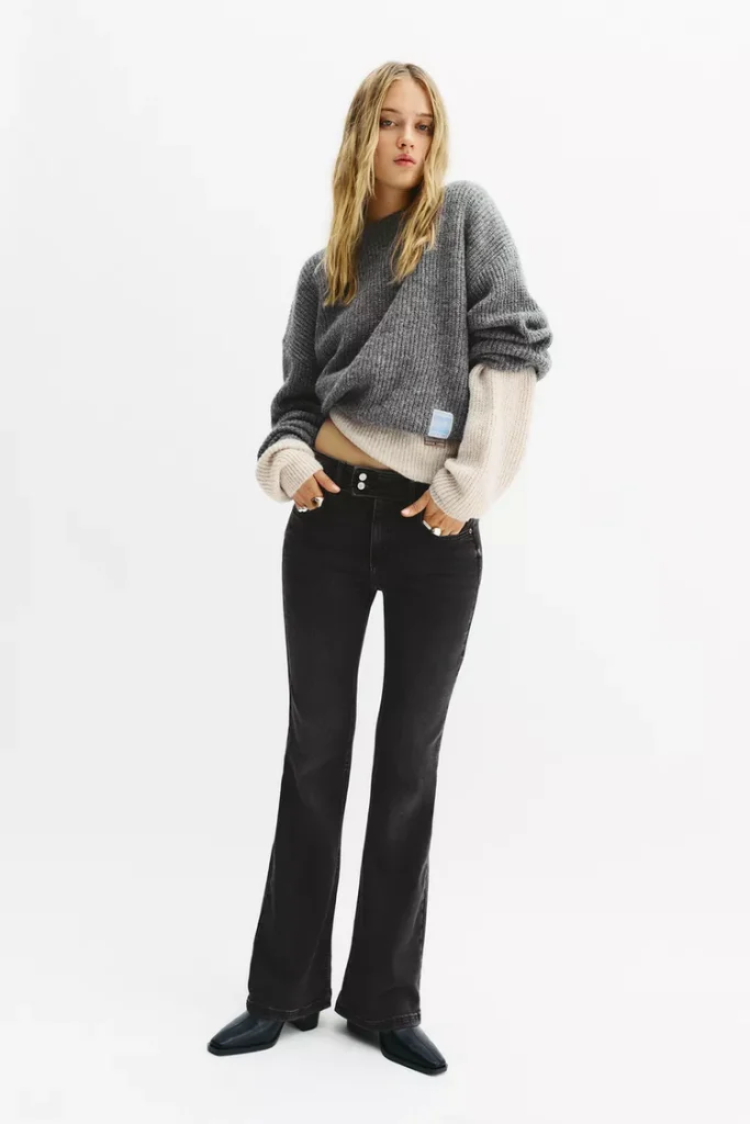 Bootcut revisité : Les pantalons bootcut sont de retour dans des versions plus simples, en denim foncé ou noir. Avec leur taille Basse, ils allongent la jambe et équilibrent les hanches.