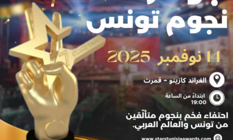 ​La société « Stars Tunisia Event » s’apprête à présenter aujourd’hui vendredi 14 novembre 2025, la soirée de la septième édition de l’événement artistique prestigieux« Prix des Stars de Tunisie » (Jouaez Noujoum Tounes).